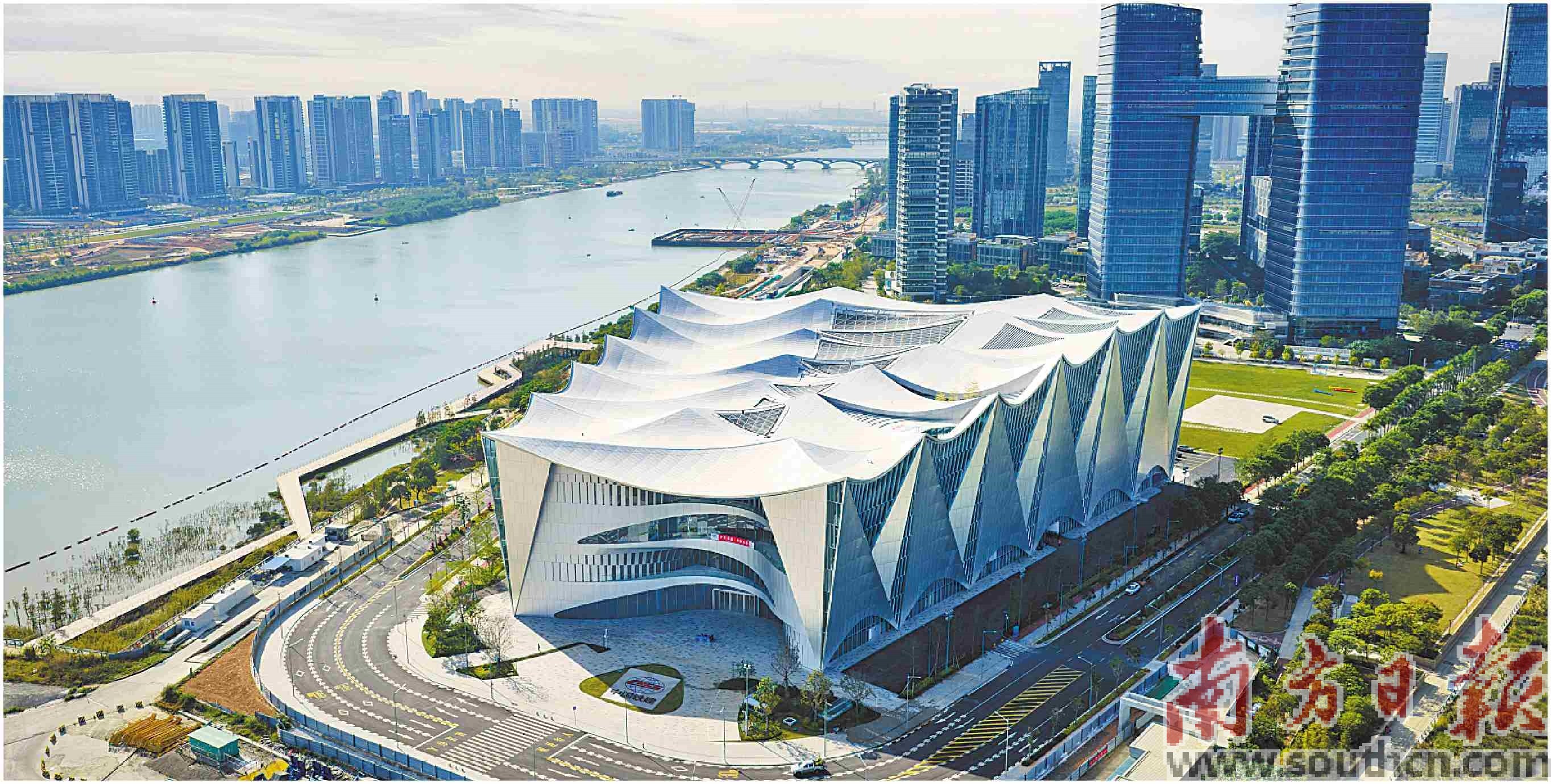 12月12日,位于广州南沙珍珠湾区灵山岛尖端的大湾区科学馆隆重亮相。建筑面积约9.26万平方米,集学术中心、科技馆及配套功能于一体,为大湾区科学交流增添新地标。大湾区科学馆以“千帆竞发,科技兴盛”为设计理念,拥有全国最大的波纹连续焊接不锈钢屋顶。屋顶上的“金属波浪”由26个凹形曲面组成,最大高差达21米。